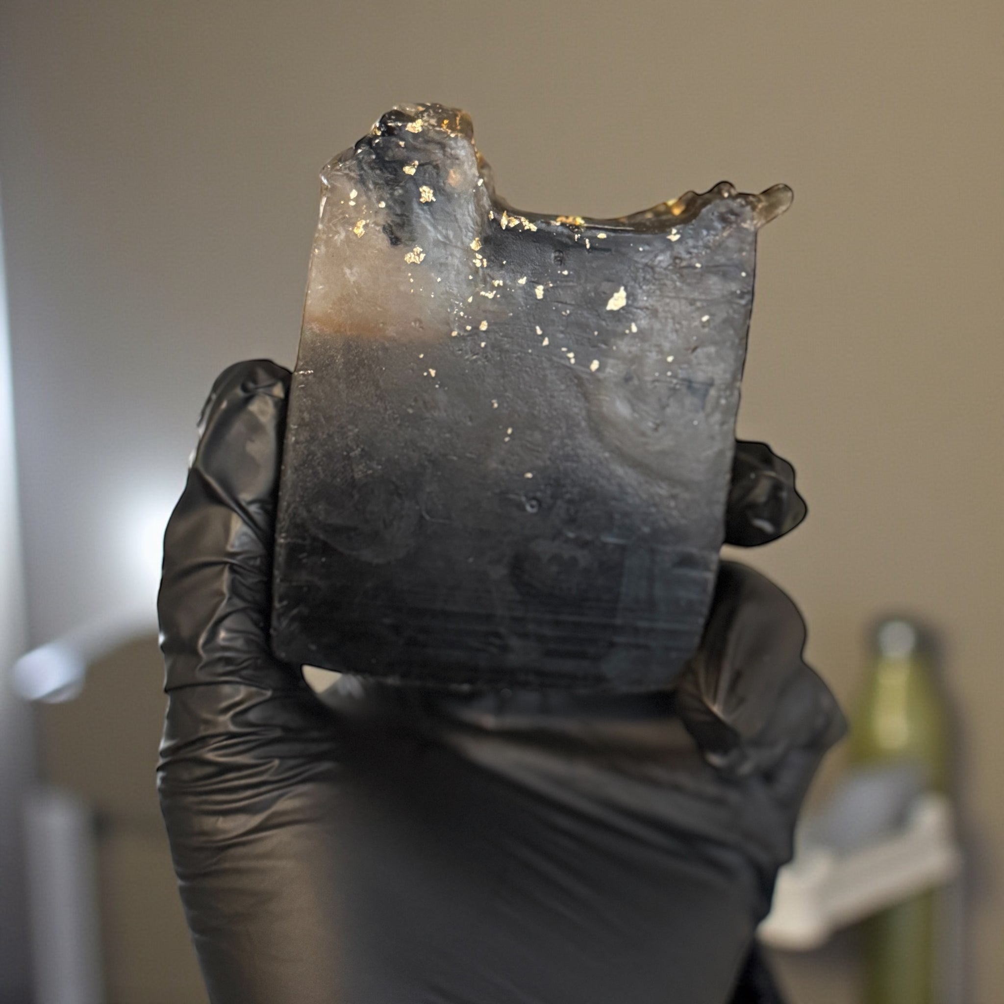 Ingredients: Cocos Nucifera Oil (Coconut Oil), Elaeis Guineensis Oil (Palm Oil), Carthamus Tinctorius Oil (Safflower Oil), Glycerin, Avena Sativa (Oat) Kernel Flour, Aqua (Water), Mel (Honey), Sodium Hydroxide, Sorbitol, Propylene Glycol, Sorbitan Oleate, Avena Sativa Protein Extract (Oat Protein Extract), Activated Charcoal,24k Gold, Fragrance