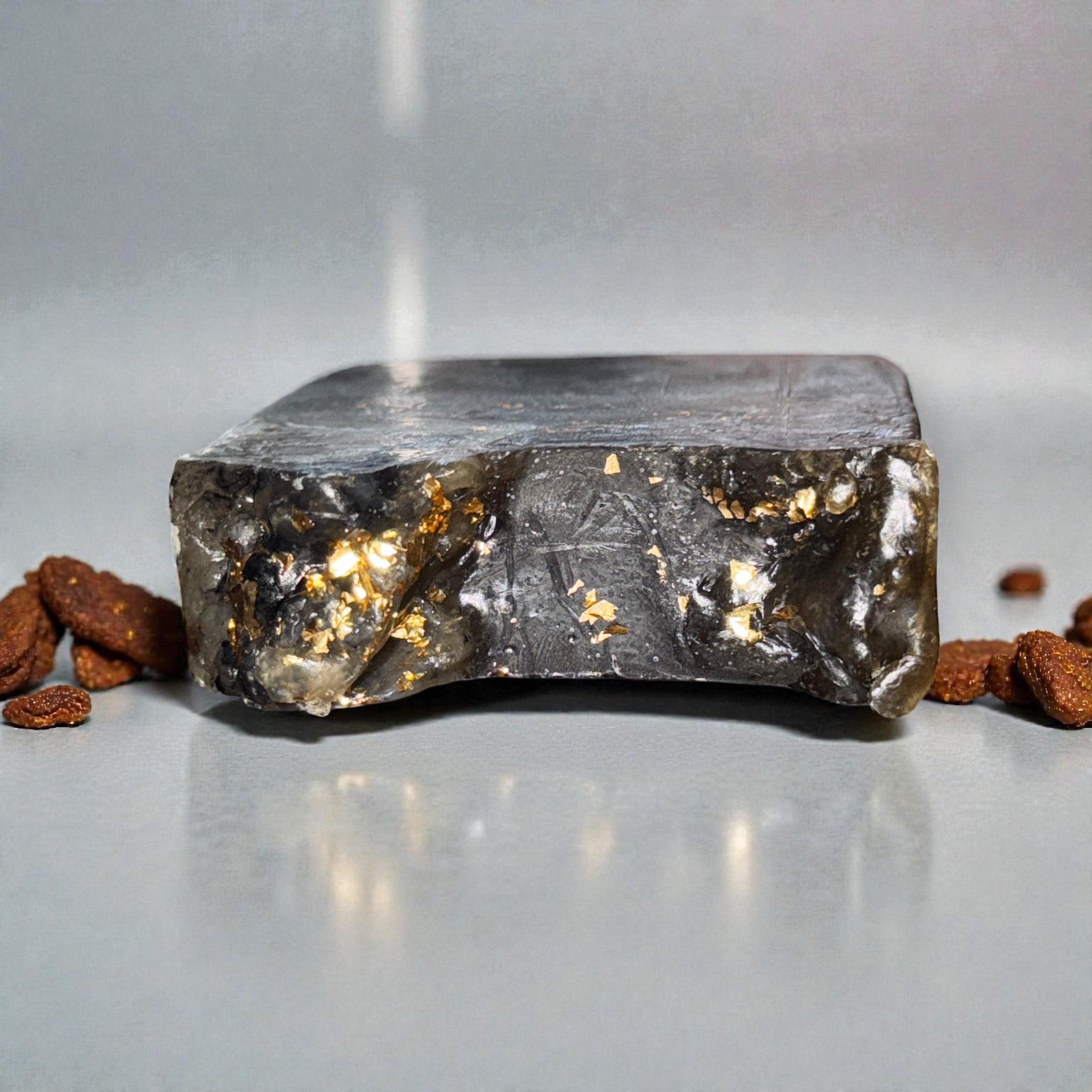 Our 4oz "VANILLA TEA TREE" soap bar, a powerful combination of Activated Charcoal and African Black infused glycerin soap, enriched with hints of Honey and Shea leaving your skin refreshingly clean. This bar has an alluring clean scent profile of Tea Tree essential oil, and warm vanilla.